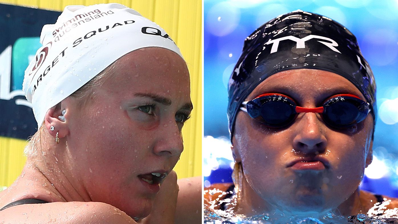 Katie ledecky, left, and ariarne titmus compete for gold in the women's.